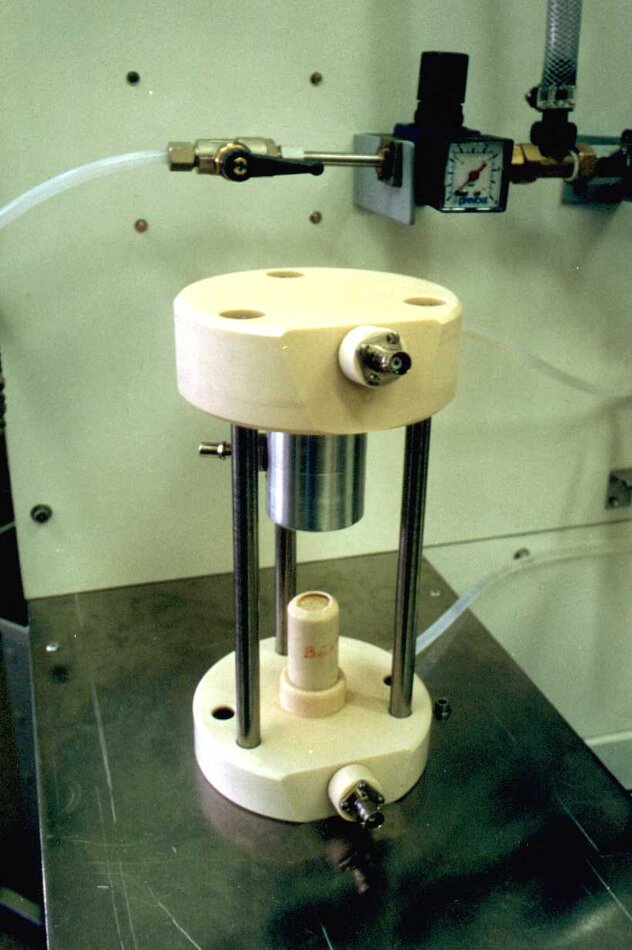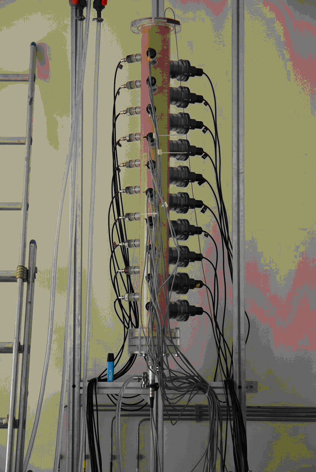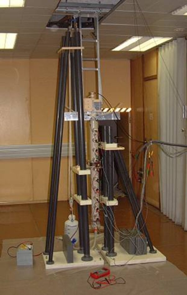 Die Labormessungen werden vom Zentimeter- zum bis Meterbereich durchgeführt (an verfestigten und nicht verfestigten Stoffen und in Brüchen). Diese sind erforderlich, um die Modelle zur Berechnung der durch die Zirkulation von Fluiden in der Kruste erzeugten elektrischen und magnetischen Felder einzugrenzen[I2] [I3] . Derzeit wird die Entwicklung der Elektrofiltration mit dem Wassergehalt im Boden noch erörtert, sowohl nach Beobachtungen (recht selten) als auch nach Modellierungen[I4] . Im Rahmen des Netzwerks REALISE und gemeinsam mit LhyGeS arbeitet unser Team an der Quantifizierung der Elektrofiltration bei Abflüssen im Sand, in besonders gesättigten Bedingungen, wobei jede Messung eines elektrischen Potentials an eine Messung des Wassergehalts und eine Druckmessung gekoppelt wird.