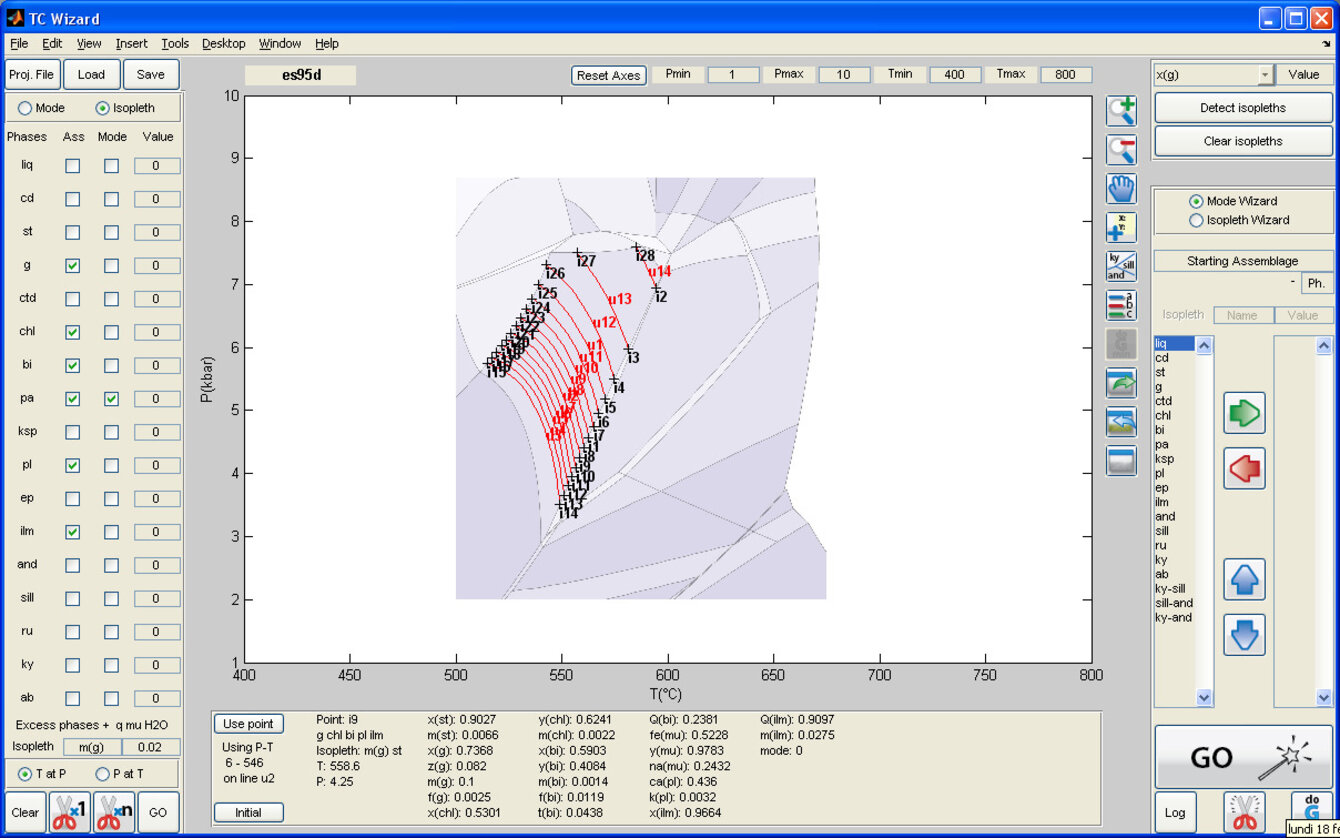 • Calculation of several modal or compositional isopleths at one time