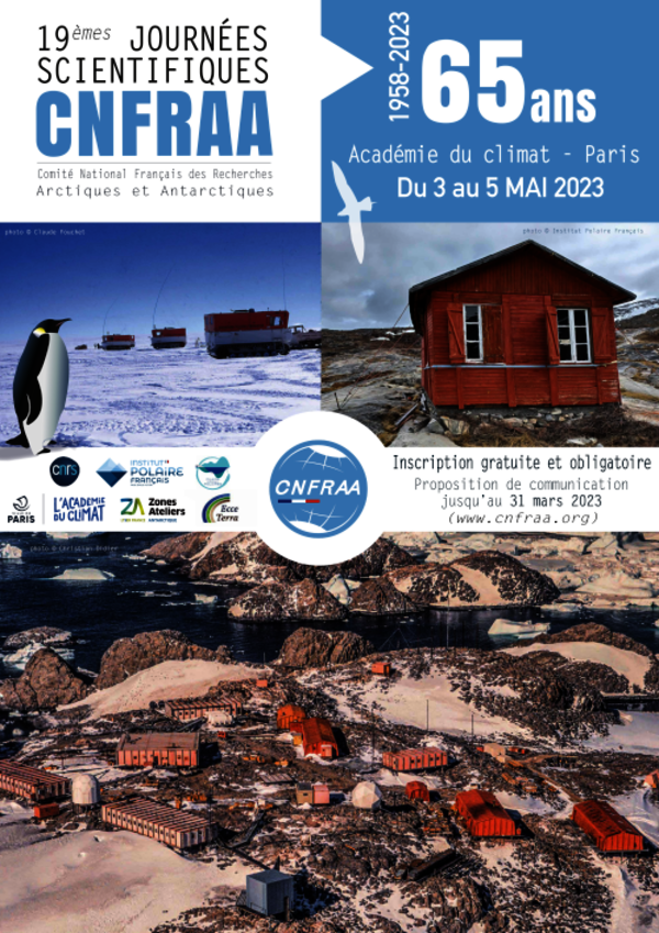 Le Comité National Français des Recherches Arctiques et Antarctiques (CNFRAA) a le plaisir de vous annoncer que la 19ème édition de ses Journées Scientifiques se déroulera à l'Académie du climat à Paris les 3, 4 et 5 mai 2023. Ces journées, pluridisciplinaires (Sciences Physiques, Humaines, de la…
