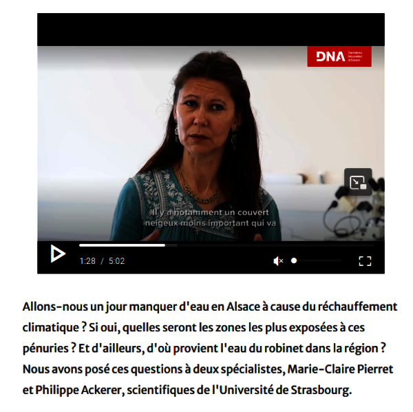 Allons-nous un jour manquer d'eau en Alsace à cause du réchauffement climatique ? Si oui, quelles seront les zones les plus exposées à ces pénuries ? Et d'ailleurs, d'où provient l'eau du robinet dans la région ? Nous avons posé ces questions à deux spécialistes, Marie-Claire Pierret et Philippe…